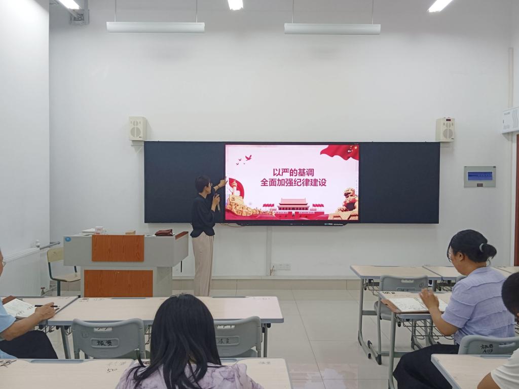 为深化全体党员的纪律意识,推动全面从严治党向纵深发展,6月12日,2138cc太阳集团官网入口在豁然楼A113教室举办了主题为“以严的基调 全面加强纪律建设”的党课教育活动。本次党课由党委副书记韩建敏主讲,公司全体党员参加。