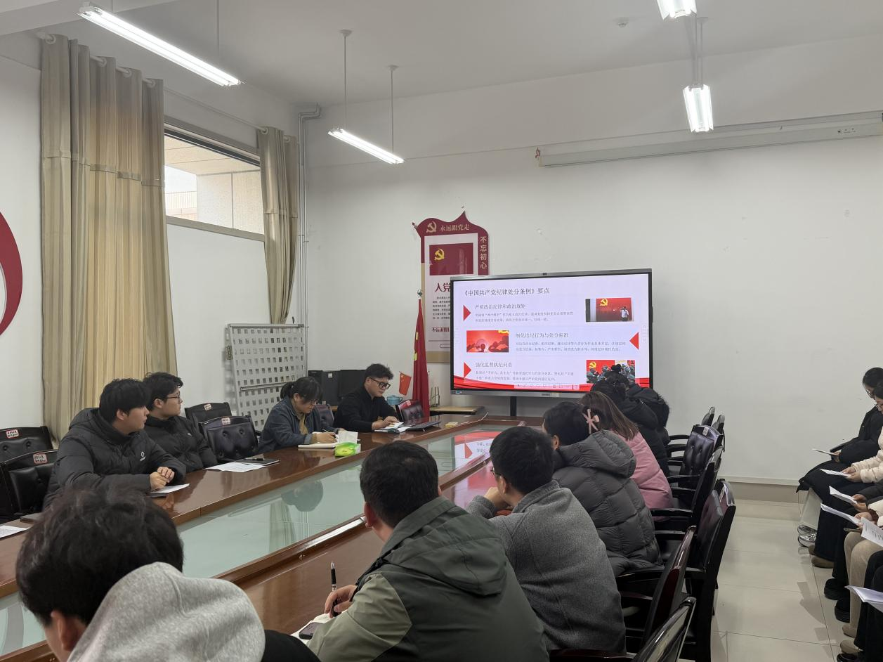 会上,全体与会人员围绕廉洁教育和党纪法规认识展开了深入研讨。孙盼盼认为党员教师要恪守法规底线,抵制不正之风,要保持党员教师廉洁形象,立德树人、以德服人;丁芳提出要将廉洁理念融入教学工作与师德建设之中,自觉加强党纪法规学习;阴法庭从课堂教学角度强调廉洁从教是坚守教育初心的重要准则;程思承诺在知识传授过程中要注重员工品德培养,绝不触碰党纪法规底线;张宏杰结合科研工作分享了坚守学术道德的感悟;员工党员代表则结合自身学习和实习实践经历,表示将在今后的学习和实践中继续恪守廉洁原则,主动加强纪律意识。