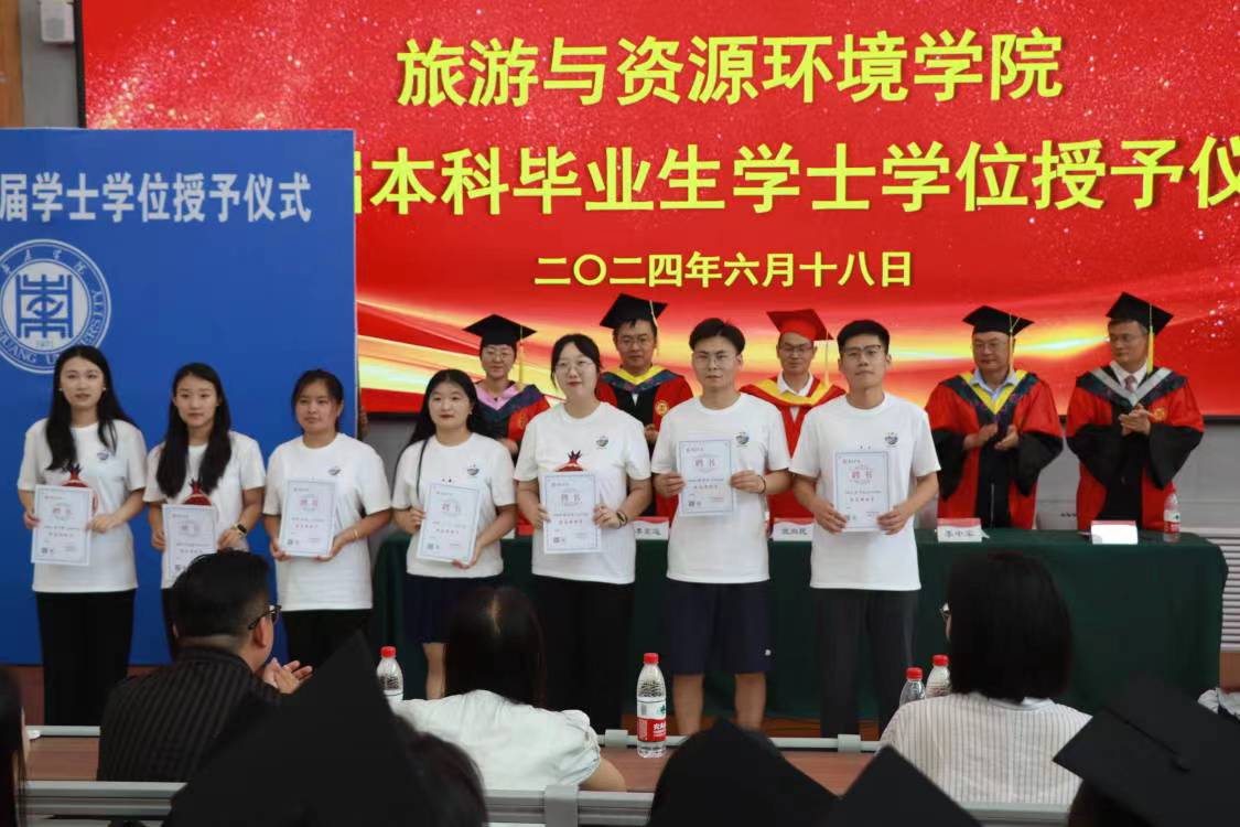 会上为2024届毕业生代表颁发员工联络员聘书,望加强母校与员工、员工与员工之间的联系。郭文文作为教师代表发言,鼓励同学们坚持对知识的追求,不畏艰难,勇于创新,敢于挑战未知,并为同学们送上充满真挚与深意的美好祝愿。毕业生代表谭亚棣在发言中表达了对母校及老师的感谢与留念,并表示将立志做有理想、敢担当、能吃苦、肯奋斗的新时代好青年。