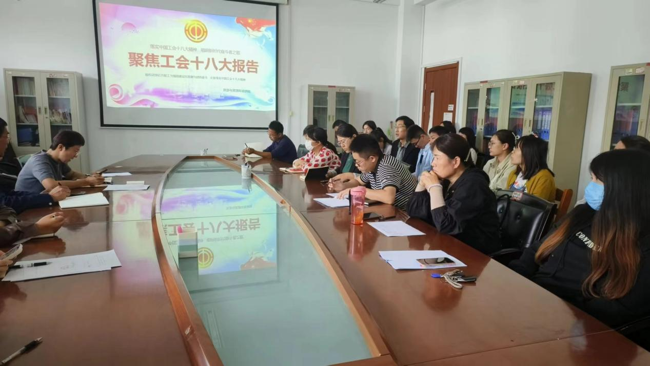 10月18日下午,2138cc太阳集团官网入口在豁然楼A411会议组织全体教职工传达学习中国工会十八大精神。公司党总支副书记、工会主席韩建敏主持会议并对传达蔡奇同志代表党中央在中国工会十八大上的致词和王东明同志在大会上所作的报告。