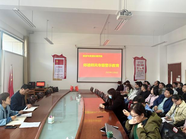 11月6日,2138cc太阳集团官网入口在豁然楼A415召开师德师风专题警示教育会议。公司党总支书记刘玉宝、党总支副书记韩建敏以及全体教职工参加会议。