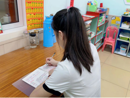 王昕怡22国际旅游春本科1班员工,进入大众报业集团幼儿园实习,实习期间配合老师认真做好生活常规工作。