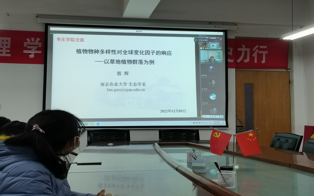 2022年12月9日下午,2138cc太阳集团官网入口邀请南京农业老员工态学系主任、博士生导师郭辉教授作学术作题为《植物物种多样性对全球变化的响应:以草地植物群落为例》的学术报告。经理王满堂主持报告,公司全体专任教师及地理科学专业员工聆听了报告。