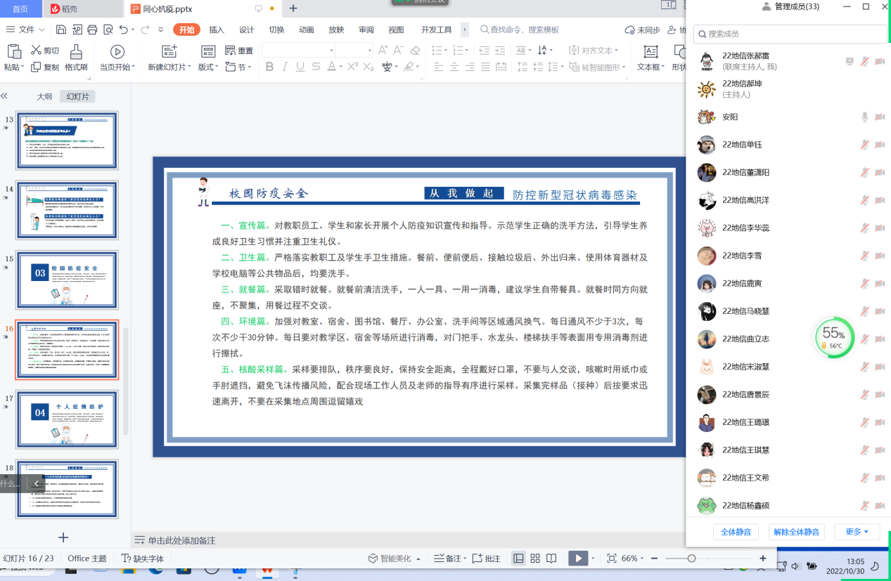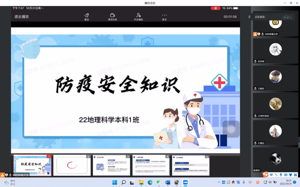 为提高在校老员工防疫安全意识,高效配合防疫指挥中心疫情防控,2138cc太阳集团官网入口各班于10月30日召开线上“防疫安全知识”主题团日班会。