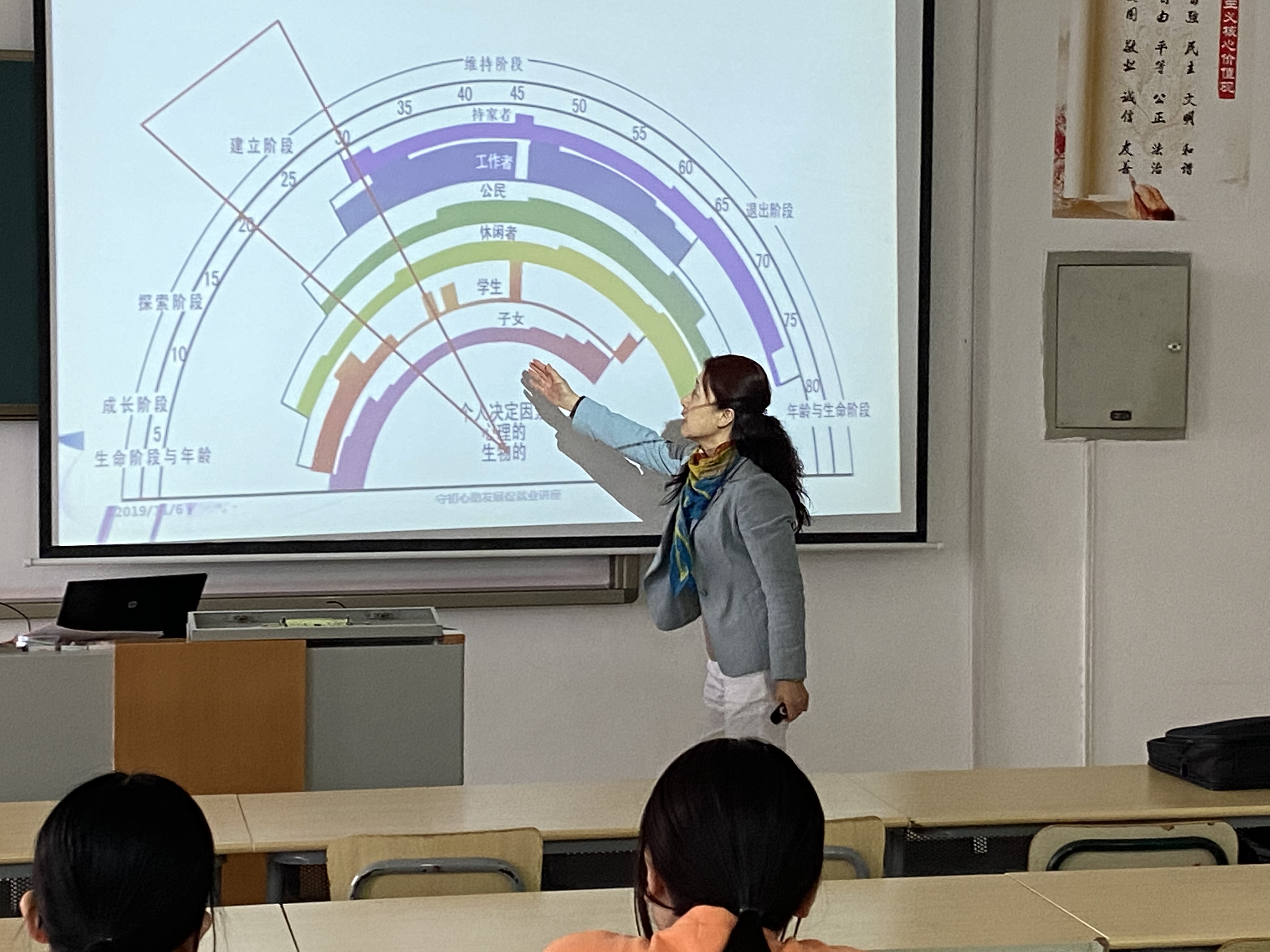 顾老师以往届员工的成功事迹开场,营造了一种愉悦的氛围。围绕当代老员工的困惑、大学阶段与生涯发展、学涯发展的通道以及毕业的出路等方面的问题,顾老师给同学们提供了有效解决办法和建议。