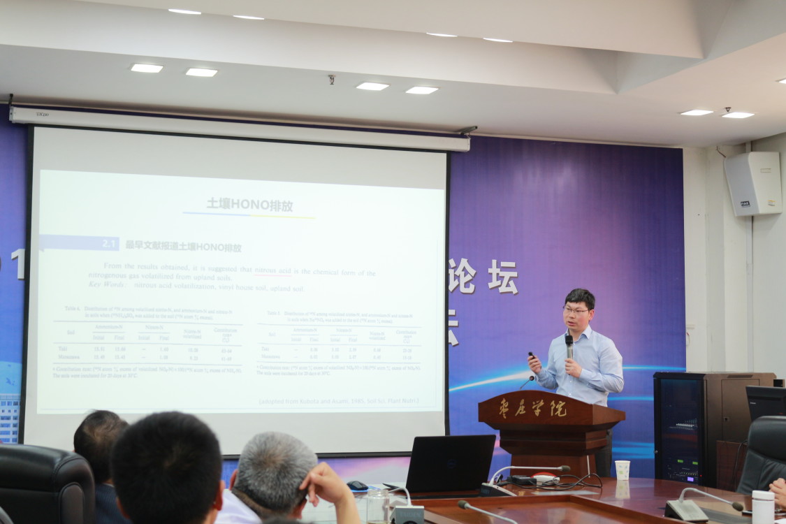 活动分教师座谈和专业学术讲座两个阶段进行。首先,吴电明研究员高水平论文写作技巧与方法题与公司相关专业教师充分互动交流撰写高水平科研论文的方法和技巧,使公司教师为以后提高科研论文写作能力奠定了良好基础同时与会双方就今后进一步交流与合作交换了意见,达成共识。随后,吴电明研究员作了关于《土壤与大气界面HONO气体交换:方法、过程和影响》的研究报告。在报告中,他分别从研究背景、研究方法和研究结论三个方面介绍了他及其科研团队近年来所做的研究工作。
