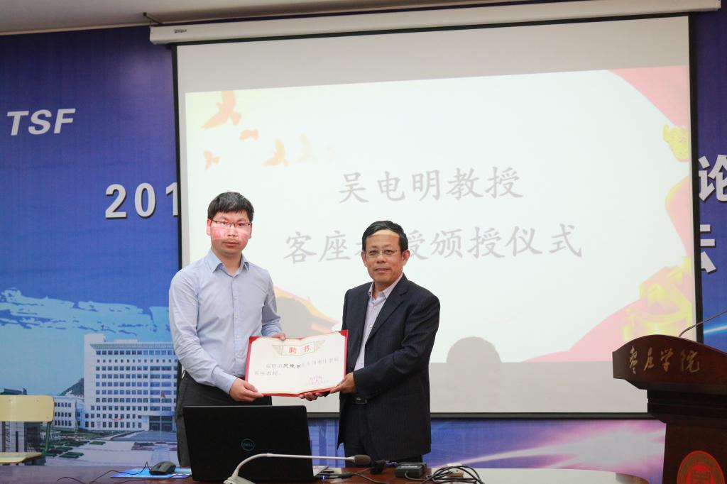 座谈会后副董事长明清河教授为吴电明研究员颁发了客座教授聘任书。