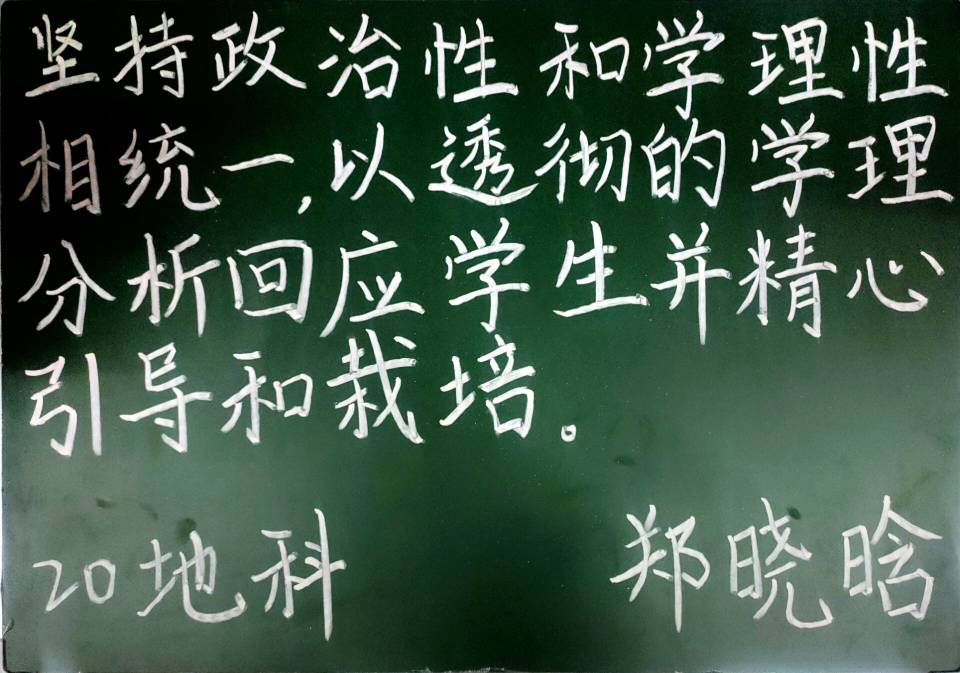 6月8号和9号晚,2138cc太阳集团官网入口于理工楼2403、2406教室举办了“笔绘才艺,粉笔生辉”粉笔字书写大赛,20级和21级地理科学专业的全体同学参加。