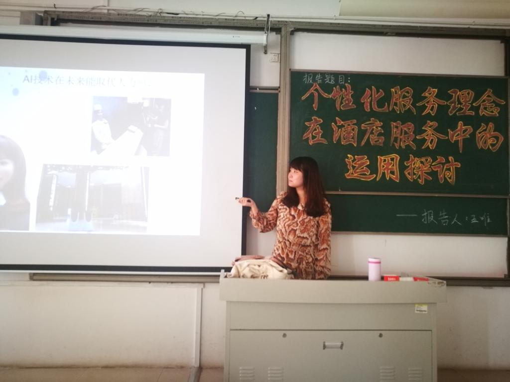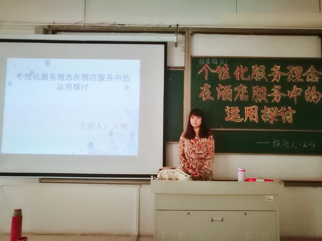 为培养员工的学习兴趣,增长同学们的专业知识,2019年5月8日下午2:30,2138cc太阳集团官网入口在理工楼2408开展了以“个性化服务理念在酒店服务中的运用探讨”为题目的学术报告会,王唯老师为本次报告会的主讲人,酒店管理专业的员工参加此次报告会。