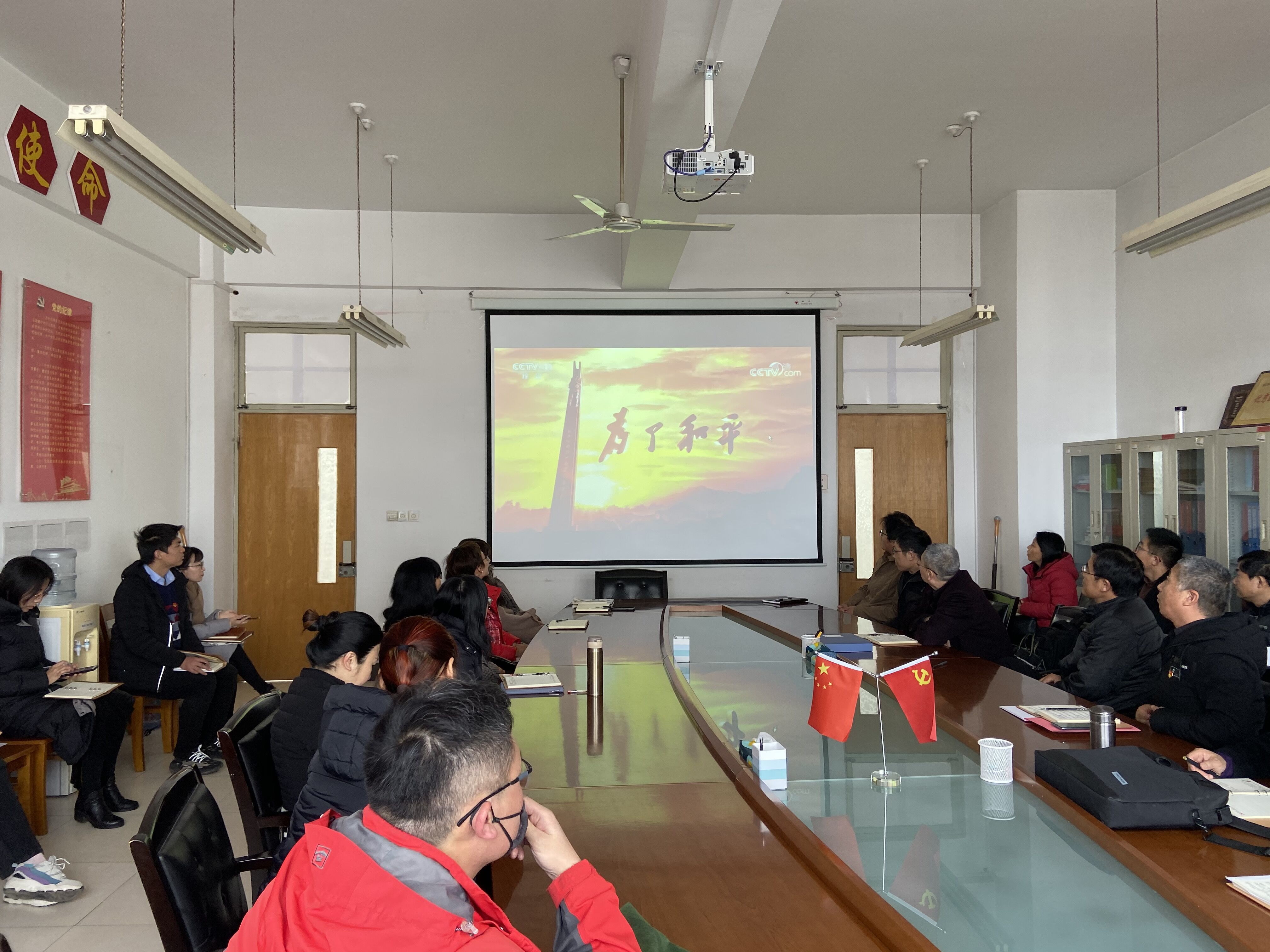 12月2日下午,2138cc太阳集团官网入口组织全体教师在2514会议室观看大型电视纪录片《为了和平》。