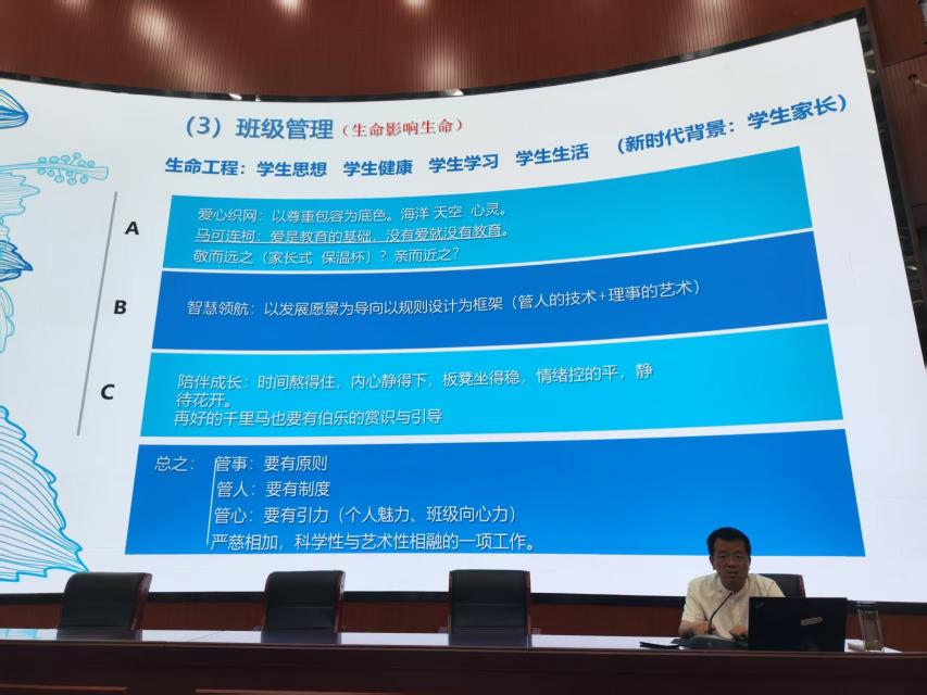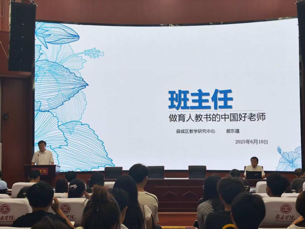 为顺利推进公司地理科学专业教育见习中见习班主任工作,促进地理科学专业师范生对中学班主任工作的了解,6月10日下午,2138cc太阳集团官网入口邀请了山东省优秀班主任、枣庄市薛城区教学研究中心主任郝东蕴作报告。报告由经理王满堂主持,指导教师及2023级、2024级地理科学专业全体员工参加了此次活动。