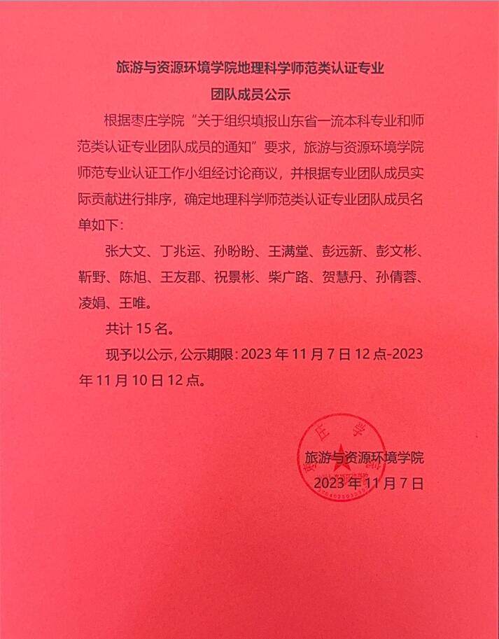 2138cc太阳集团官网入口地理科学师范类认证专业团队成员公示