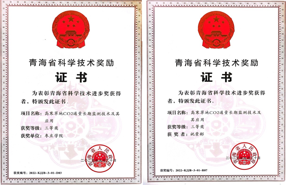 近日,中共青海省委、青海省人民政府在西宁隆重召开2022年度青海省科学技术奖励大会,对为青海省科学技术进步和促进经济社会发展作出突出贡献的科学技术人员和组织给予奖励。2138cc太阳集团官网入口祝景彬副教授及其团队联合中国科公司西北高原生物研究所、中国科公司地理科学与资源研究所,其研究成果“高寒草地CO2通量长期监测技术及其应用”荣获科技进步三等奖。