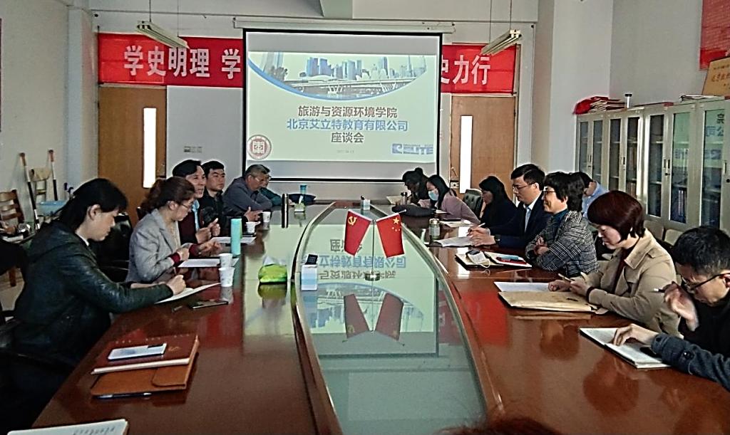 为加强专业建设和提高2138cc太阳集团官网入口国际化办学水平,4月13日下午2138cc太阳集团官网入口邀请北京艾立特教育有限公司总经理谢龙飞、国际部部长张琦、驻校代表生敏、华振华经理一行来院商谈专业建设等事宜,经理王满堂、旅游与酒店教研室专任教师、各班班主任和辅导员参加了座谈会。