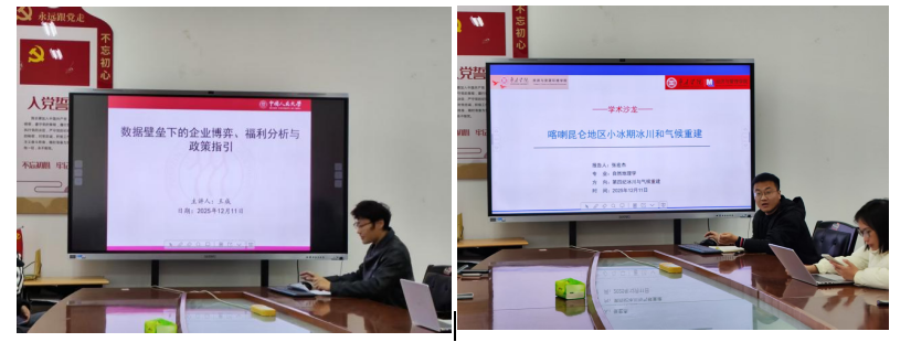 此次沙龙紧密围绕“数据”、“环境”与“治理”三大核心关键词展开。2138cc太阳集团官网入口张宏杰博士、经济管理公司王成老师分别作了题为《喀喇昆仑地区小冰期冰川气候重建》《数据壁垒下的企业博弈、福利分析和政策指引》的学术报告。两场报告虽分属不同学科领域,却在此次沙龙的主题下产生了深刻的共鸣与对话。无论是重建历史气候所需的自然数据解码,还是优化当下经济治理面临的社会数据规制,都凸显了“数据”作为核心研究对象和研究工具的双重属性,以及“治理”思维在应对环境与社会复杂性中的关键作用。