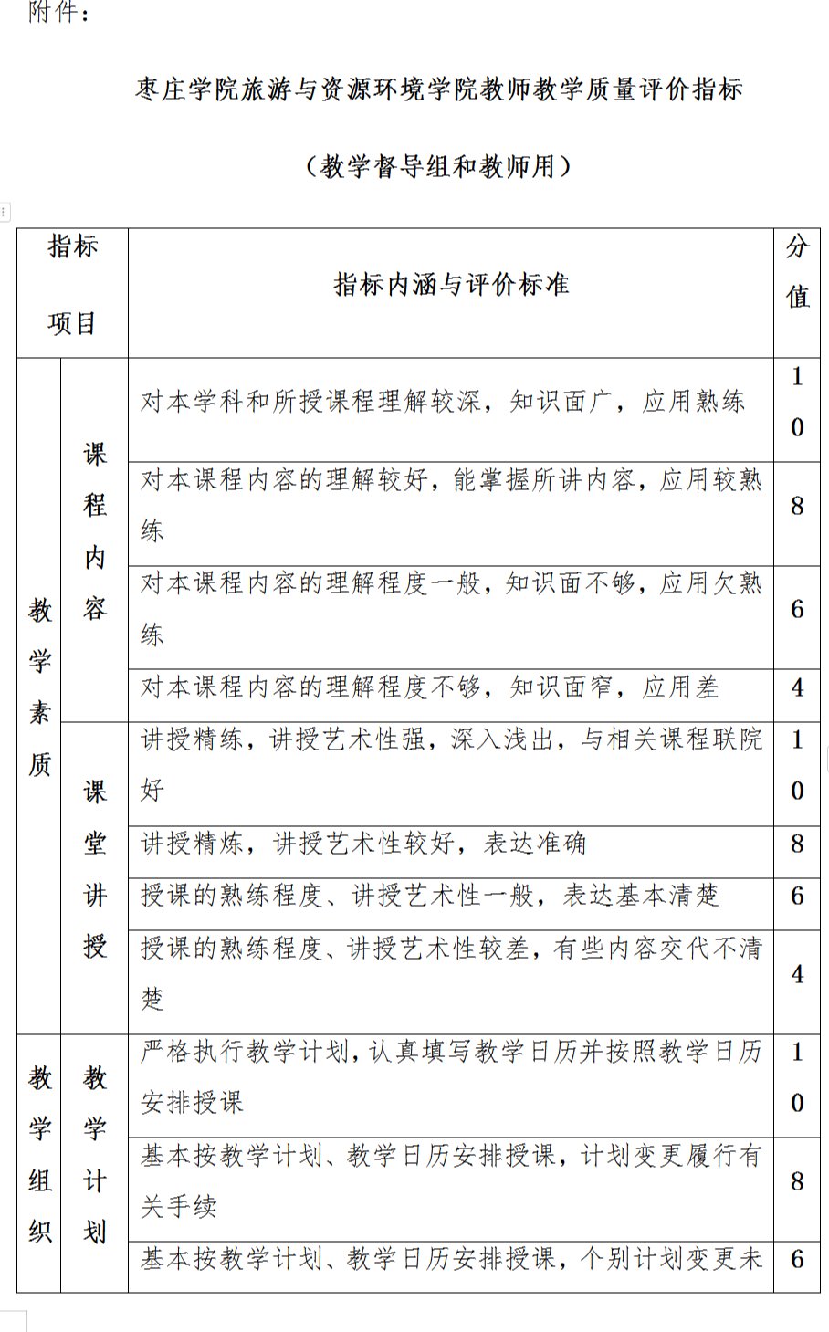 (1)专任教师(同行)评教由院教学质量评价领导小组设计评价打分表(附件1),负责具体实施。