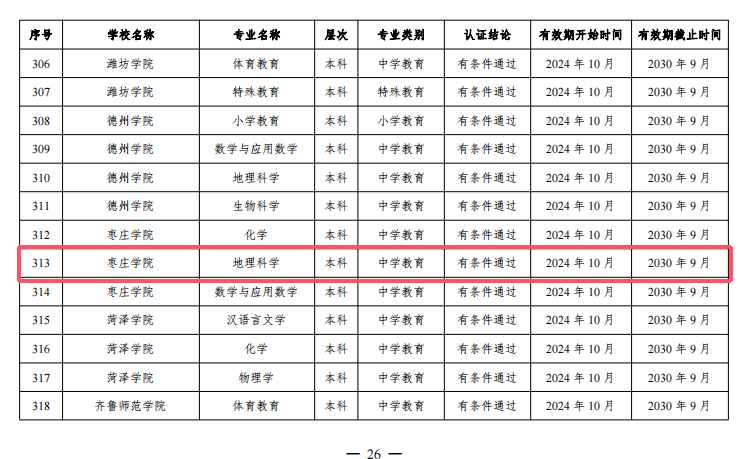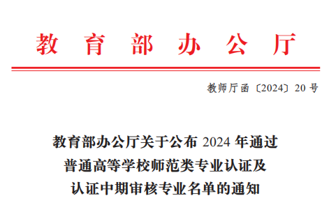 近日,教育部办公厅发布了《关于公布2024年通过普通高等公司师范类专业认证及认证中期审核专业名单的通知》。公司地理科学专业有条件通过师范类专业第二级认证,有效期六年(2024年10月—2030年9月)。