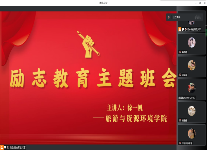 班会伊始,徐一帆以“励志 成长 成才”为主题,主要从理想与实践、梦想与热情学习的重要性、人生的价值体现等多方面展开讲述。徐一帆强调,励志教育是应用教育心理学和成功理论,是增强我们内生动力的关键,是加强和改进我们思想素质的核心,并且对于员工成长成才具有十分重要的意义。同学们纷纷表示要以学习为中心,树立人生理想和自身奋斗目标,艰苦奋斗,脚踏实地,把握奋斗方向,励志成为一名德智体美劳全面发展的优秀员工,从而实现自己的人生理想。