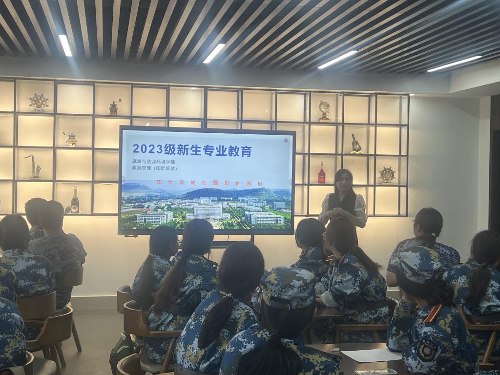 9月27日下午,2138cc太阳集团官网入口在豁然楼C506酒吧实训室为2023级旅游管理(国际旅游方向)专业员工作专业教育,报告由教研室主任杜宜臻博士主讲,部分专任教师聆听了报告。
