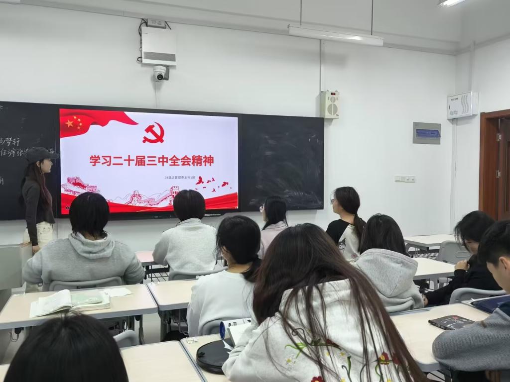 活动伊始,各班级主讲人首先带领全体同学回顾党的二十届三中全会召开的背景和重要意义,详细介绍全会提出的主要目标和重大决策,使同学们对全会精神有了初步的了解。随后,主讲人组织同学们围绕“全会精神与青年使命”展开热烈讨论,现场气氛热烈,进一步夯实理论学习成果。最后,主讲人呼吁大家要努力学习专业知识,提高自身的能力和水平,为更好地参与中国式现代化建设打下坚实的基础。