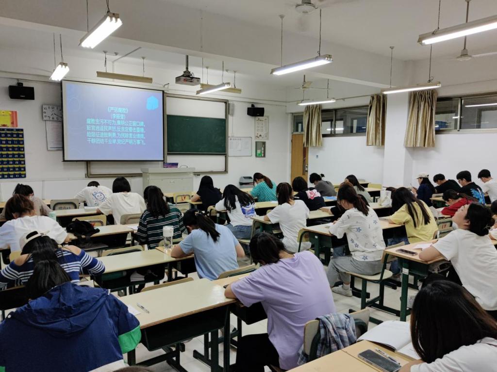 赛前,纪检部副部长付傲伟宣读比赛规则,根据幻灯片所投廉政诗词进行书写,要求书写工整,字迹清晰。比赛开始,同学们个个坐姿端正,纷纷提笔在纸上用心的书写一个个汉字,一笔一画书写工整行楷,一撇一捺彰显自我风采,力求向大家展示出自己最好的书写水平。