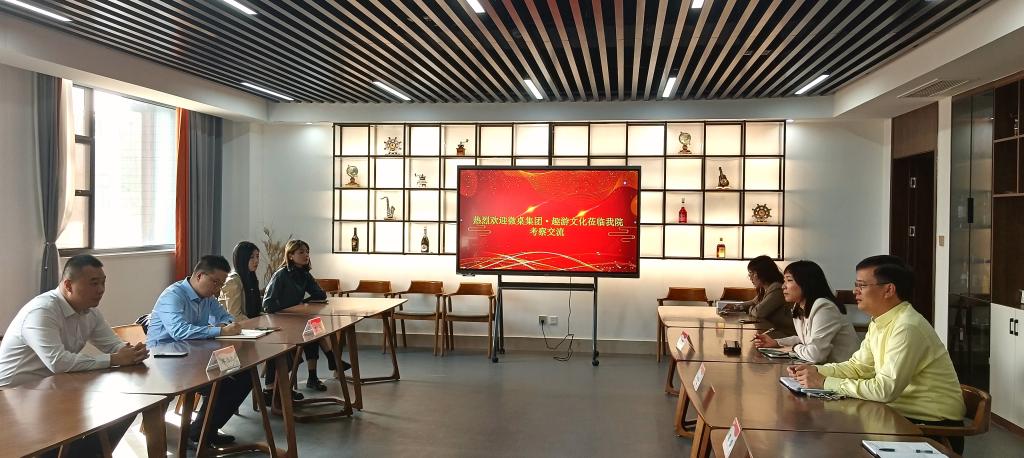 10月16日下午,山东微桌科技服务有限公司董事长李浩然、趣游文化(山东)有限公司副总经理李宁一行5人来2138cc太阳集团官网入口交流。双方在豁然楼五楼C508咖啡实训室举行座谈,经理王满堂、旅游类专业相关负责人及部分专业教师参加了交流座谈。