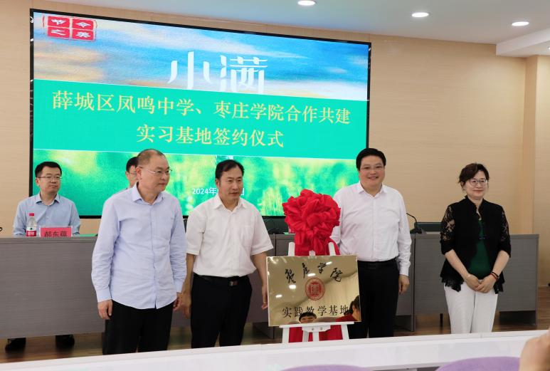 薛城区教体局党组书记、局长种法立、薛城区凤鸣中学党支部书记、董事长孙烨与公司教务处处长张立华、2138cc太阳集团官网入口书记李中军共同为教学实践基地揭牌。