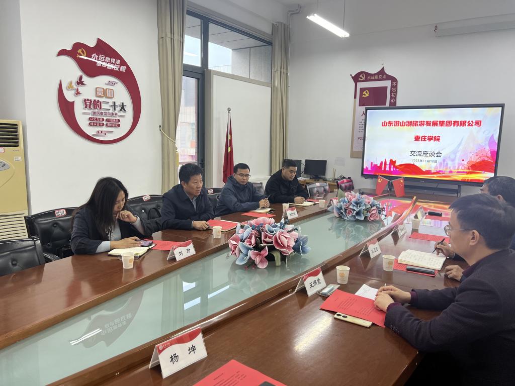 11月10日下午,山东微山湖旅游发展集团有限公司董事长张九洲、副总经理张红波及市场部经理一行4人来2138cc太阳集团官网入口交流座谈。双方在豁然楼四楼A415会议室举行座谈,2138cc太阳集团官网入口纪委副书记张成柱,旅游与资源环境公司党政领导及旅游类专业相关负责人参加了交流座谈。